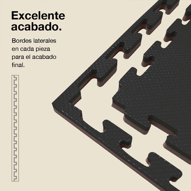 Installing our tatami puzzle is quick and easy. You only need a clean, level, and dry surface. Start fitting the pieces from one corner of the room, joining each tatami by its puzzle-type edges as if it were a jigsaw puzzle. Make sure to align the edges properly and press lightly so they remain firm and well fitted.