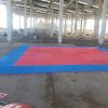 Tatami Puzzle 2.5 cm thick for rent available in measures 100×100 cm with surface in “5 lines” in reversible color: blue / red. Made of EVA rubber. Non-slip surface in “5 lines”.