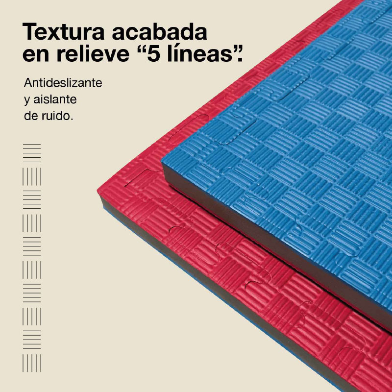 All our tatamis are made with a non-slip surface, which in the case of this 25 mm superior density model has a finish F.