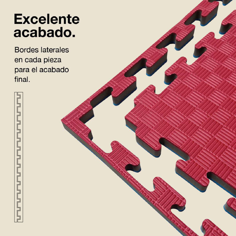 Características del Suelo Puzzle 25mm Densidad Superior - Superficie Antideslizante F, reversible Azul/Rojo