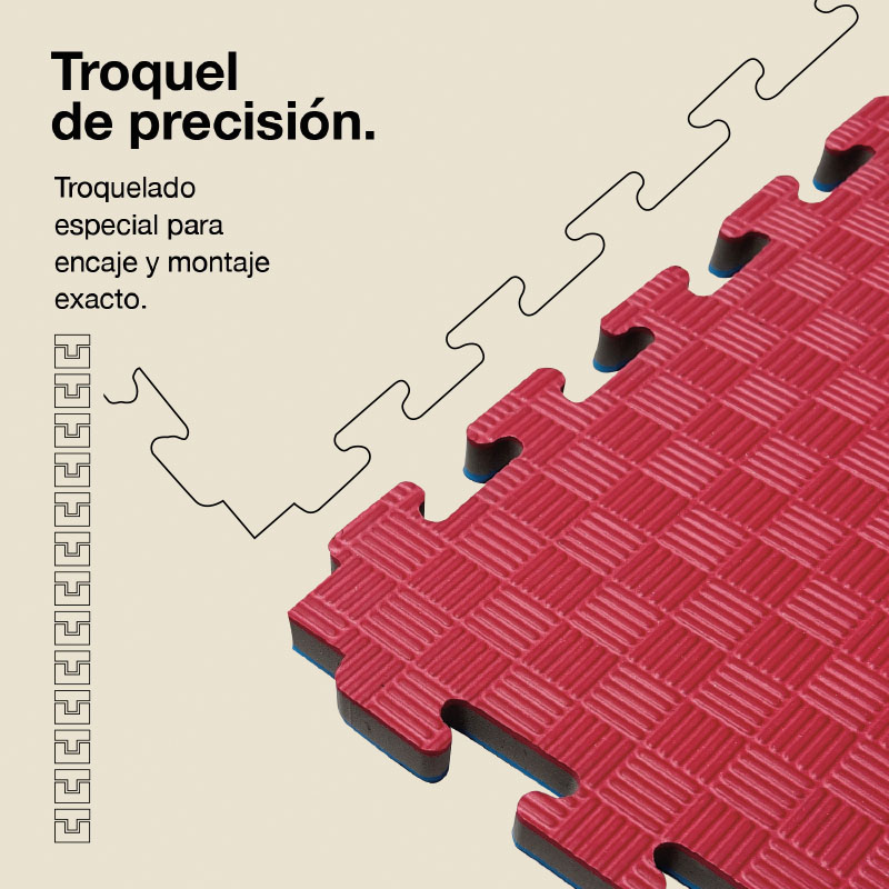 Nuestro tatami puzzle de 25mm de densidad superior con superficie antideslizante F se caracteriza por: