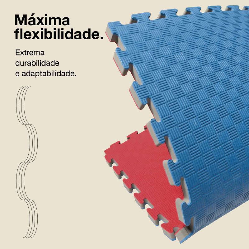 Usos Recomendados do Piso Tatame 2,5cm Densidade Superior - Superfície Antiderrapante F, Reversível Azul/Vermelho