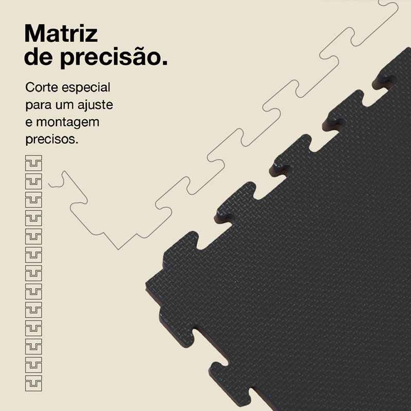 O Tatami Puzzle com 2,5 cm de espessura é adequado para karaté, taekwondo, boxe, kickboxing, full contact, dança, fitkid, ginástica, fitness, ioga, pilates, exercícios no chão. Também pode ser utilizado como elemento de proteção do chão em ginásios, parques infantis, casas, garagens, etc.