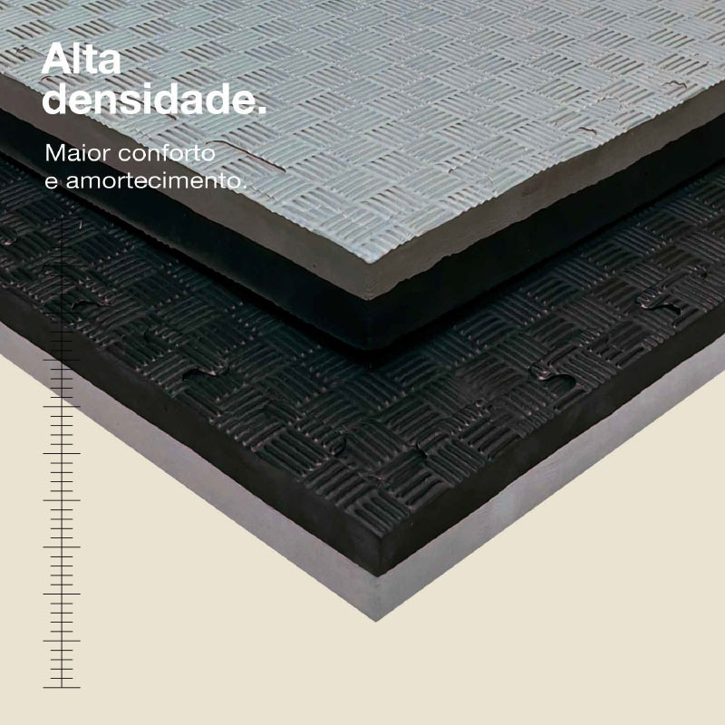 Todos os nossos tatamis são feitos com superfície antiderrapante, que no caso deste modelo de 40mm é com acabamento F. Este acabamento facilita a aderência e evita escorregões.